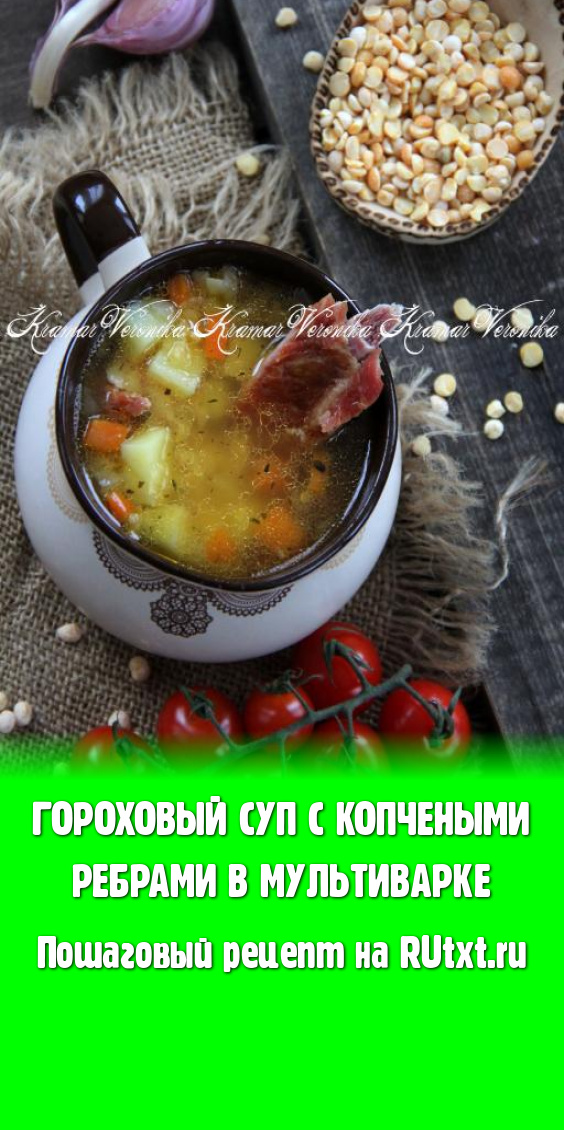 Мультиварка - замечательная помощница на кухне, в ней не только просто, но и удобно готовить. Предлагаю сварить в мультиварке ароматный, насыщенный гороховый суп с копчеными ребрами. Готовить это блюдо в мультиварке очень просто - не надо предварительно замачивать горох, следить за супом и перемешивать его в процессе варки. Копченые рёбрышки лучше разрезать или нарубить помельче. Приготовьте этот наивкуснейший суп и вы, наверняка, останетесь довольны!