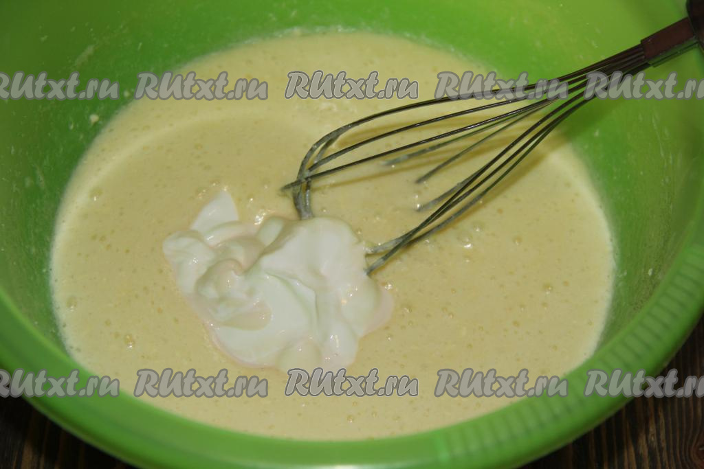 Перемешать получившуюся смесь венчиком и добавить сметану, снова перемешать до однородности.