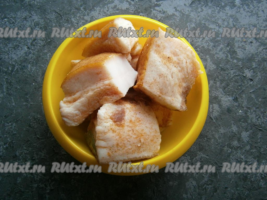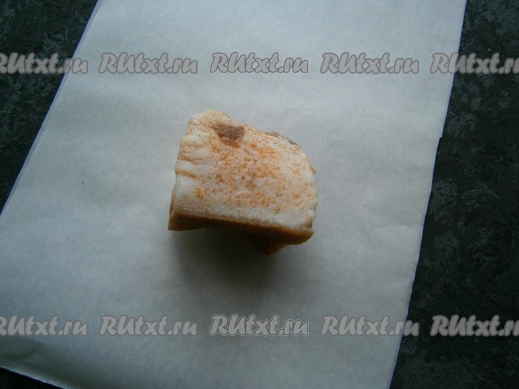 В смеси соли и перцев обвалять каждый кусок сала.