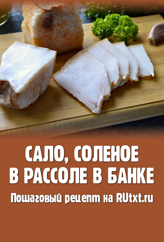 Сало, соленое в банке в горячем рассоле, - прекрасная закуска, которая будет готова к употреблению уже через сутки. Такое сало получается нежнее и мягче, чем то, что посолено сухим способом. Хранить сало можно в морозилке, завернув его в пергаментную бумагу. Обязательно попробуйте очень вкусное, ароматное, чуть остренькое сало, приготовленное по этому рецепту. Расчет продуктов дан на литровую банку.