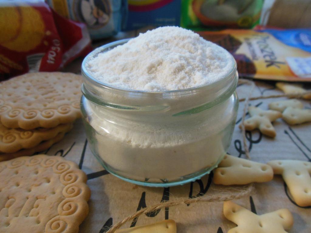 Предлагаю вашему вниманию рецепт приготовления разрыхлителя для теста в домашних условиях. Выпечка с ним получается пористой и пышной. Готовится домашний разрыхлитель достаточно быстро и просто, из вполне доступных ингредиентов. Мука, сода и лимонная кислота, из которых и состоит разрыхлитель, всегда есть под рукой у каждой хозяйки. Домашний разрыхлитель получается качественнее и дешевле покупного. Главное в приготовлении разрыхлителя - правильно соблюсти пропорции: на 12 частей пшеничной муки необходимо взять 3 части лимонной кислоты и 5 частей соды. Отмерять можно и чайной, и столовой ложкой, и даже рюмочкой. Главное - не отходить от пропорций. Срок хранения такого разрыхлителя будет составлять 2 месяца в шкафу в плотно закрытой банке. Я готовлю небольшие порции разрыхлителя, используя чайную ложку. А для устранения влажности в баночку добавляю кубик сахара. Использовать разрыхлитель, приготовленный в домашних условиях, нужно как и обычный покупной разрыхлитель. Чайная ложка с небольшой горкой - это 10 грамм разрыхлителя. При замесе теста разрыхлитель обязательно необходимо смешивать с мукой. Приготовьте разрыхлитель для теста в домашних условиях и вы, наверняка, ещё не раз вернётесь к этому рецепту.