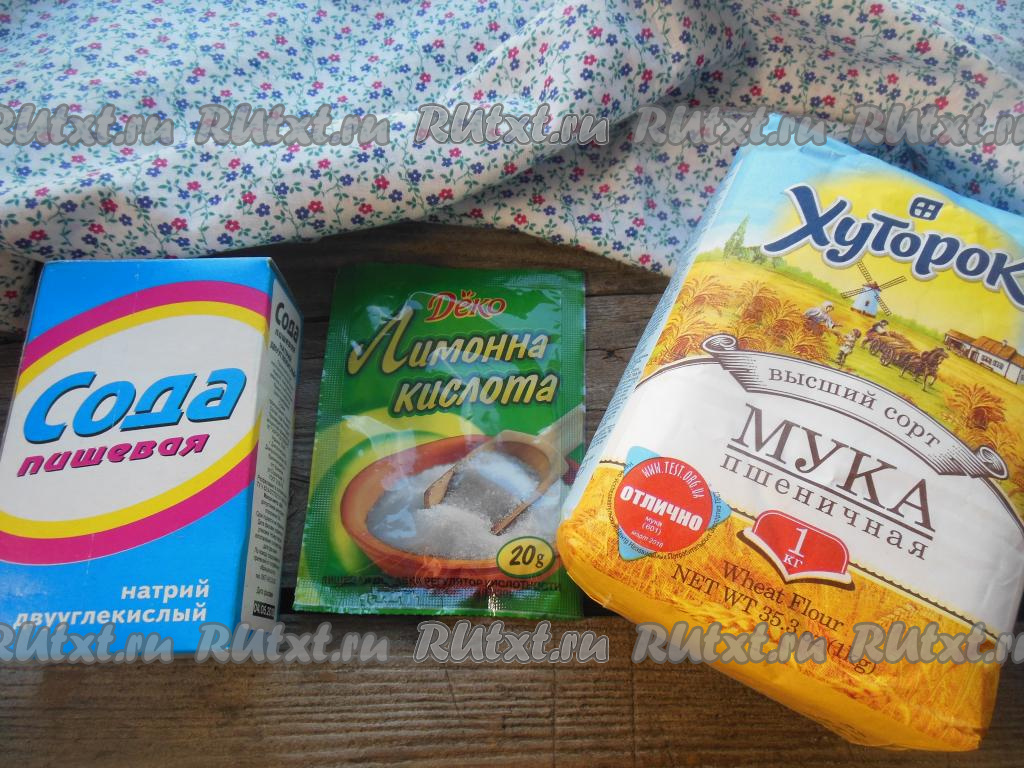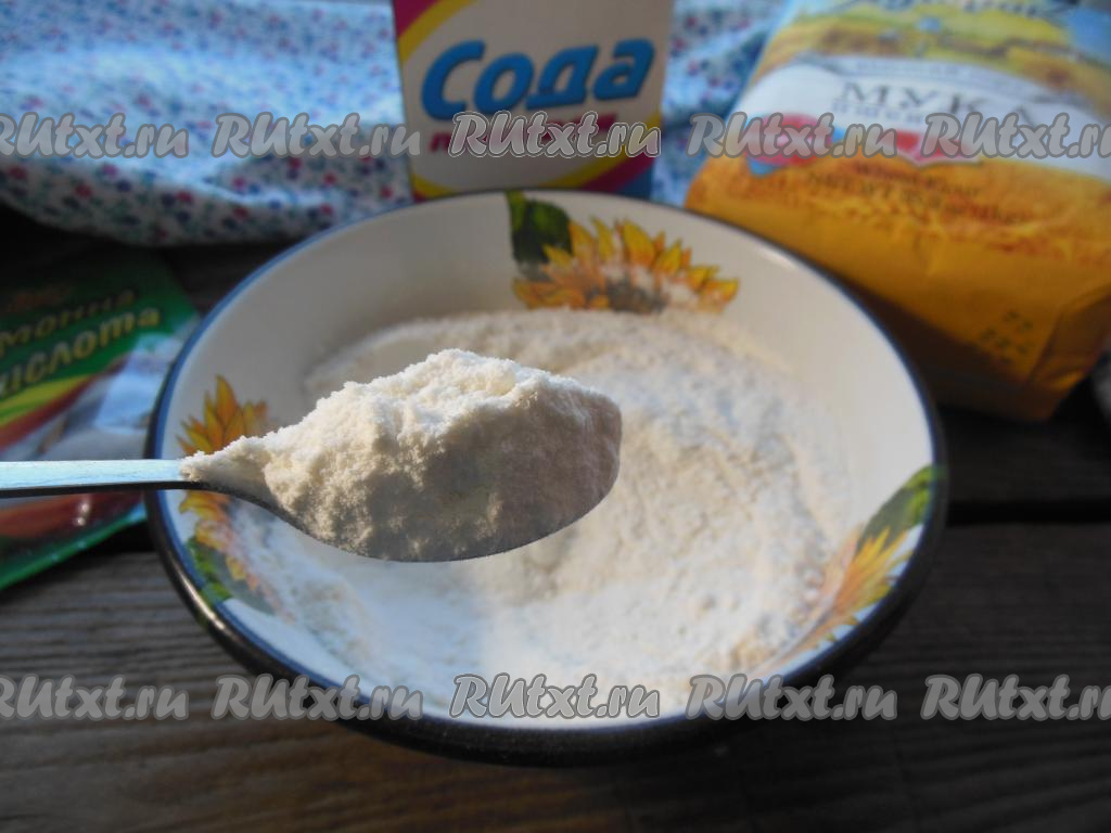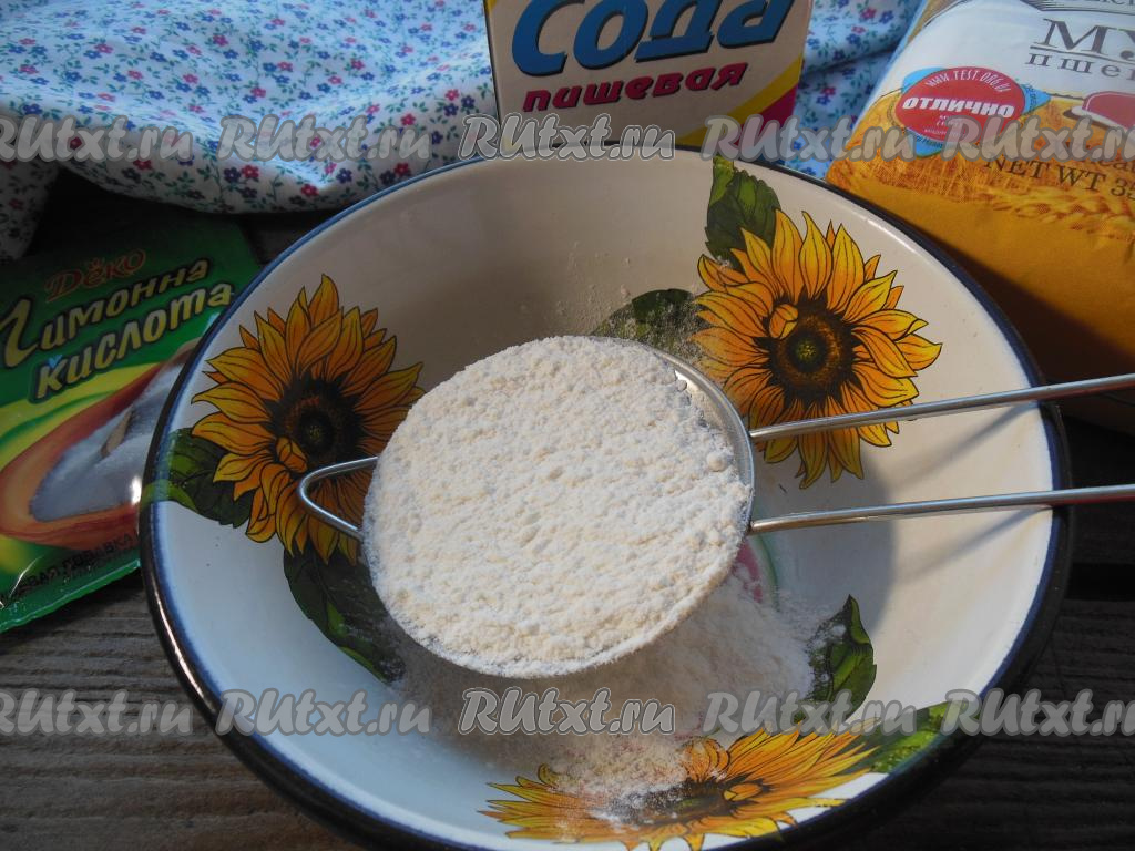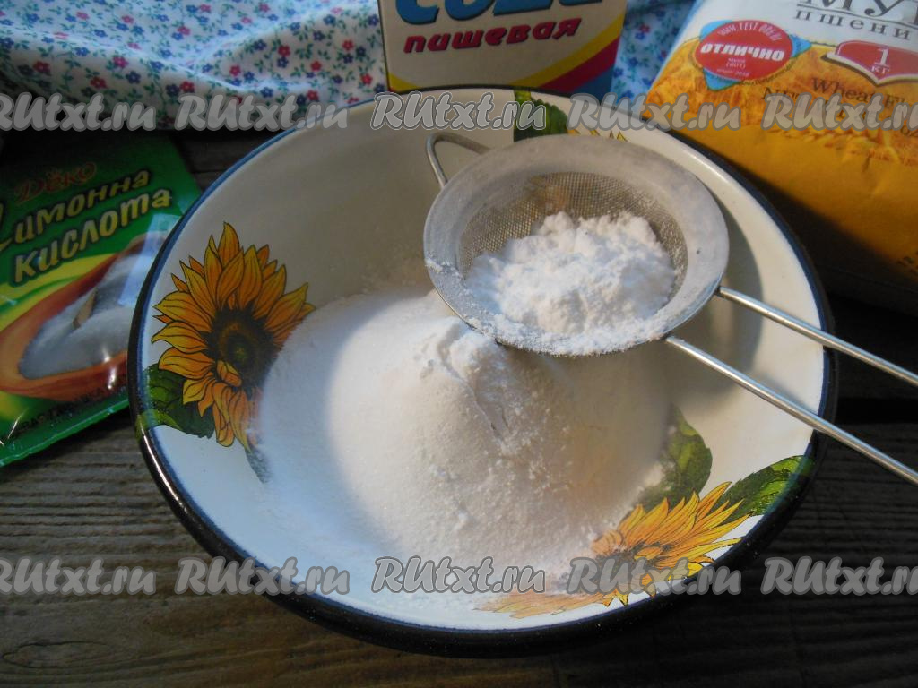 Измельченную лимонную кислоту просейте через сито к пшеничной муке и соде.