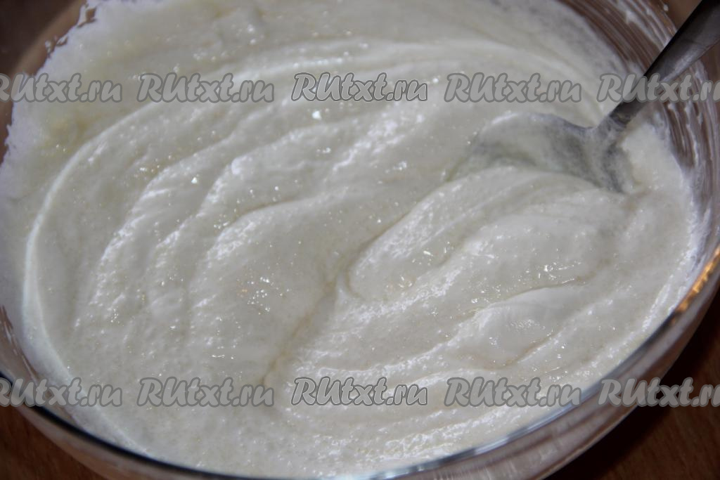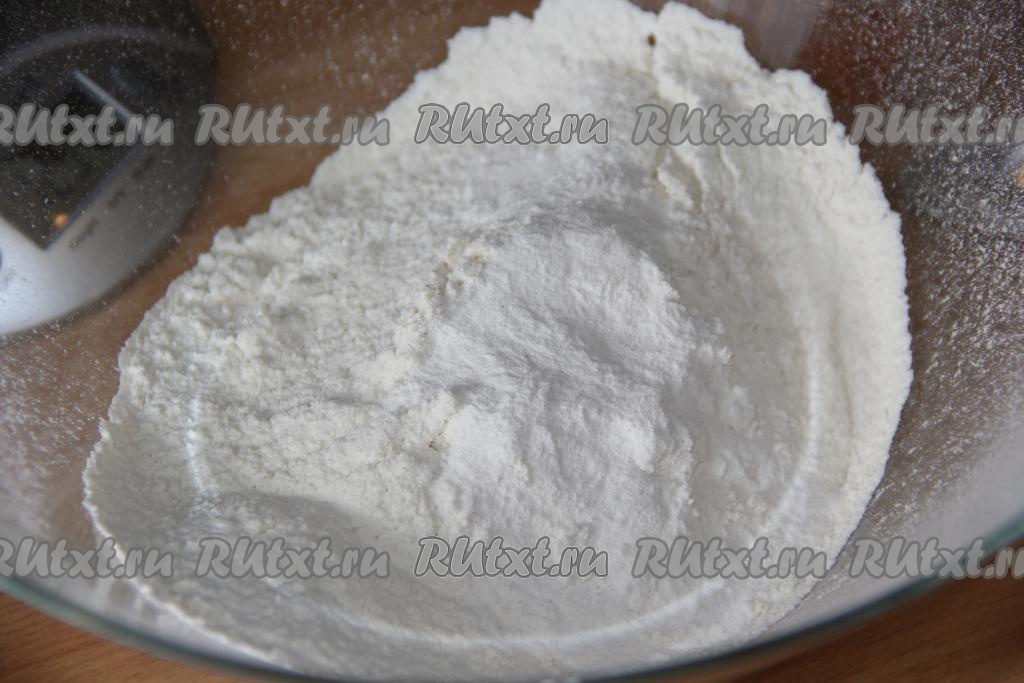 Просеять муку в глубокую миску, всыпать разрыхлитель.