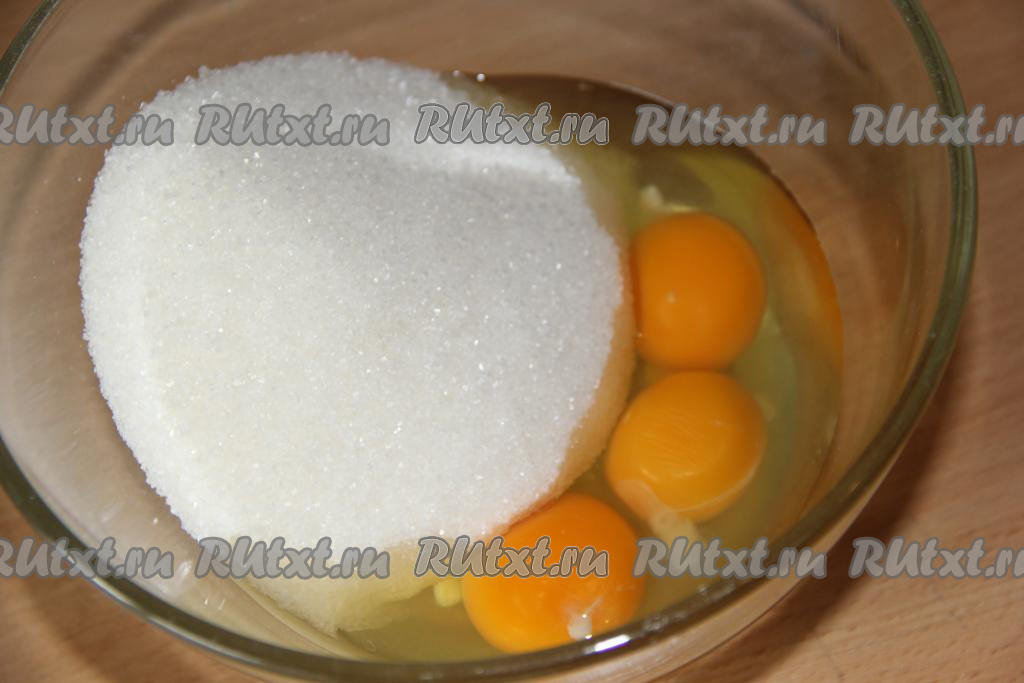 Миксером в течение 5-7 минут взбить яйца с сахаром.