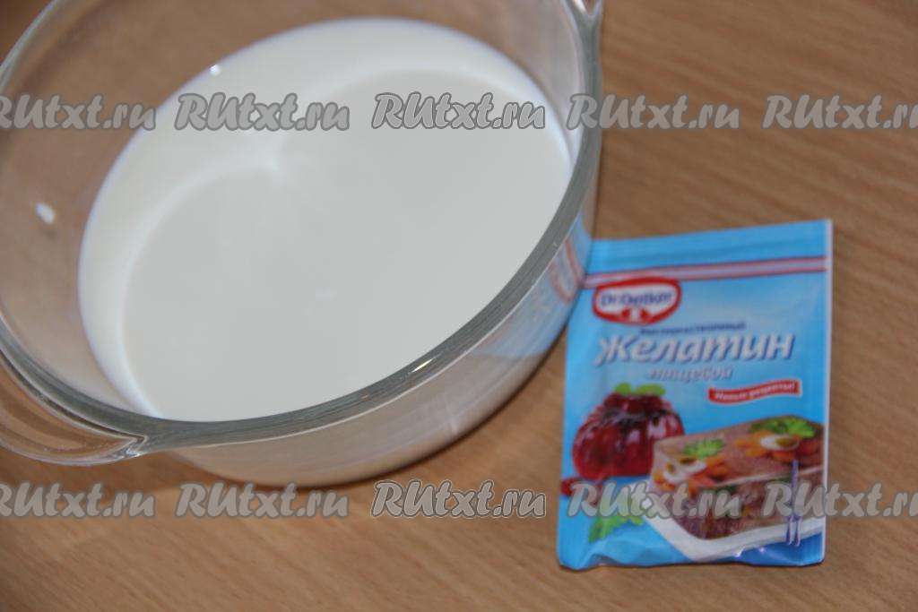 В холодное молоко всыпать желатин и оставить минут на 15-20 для набухания.