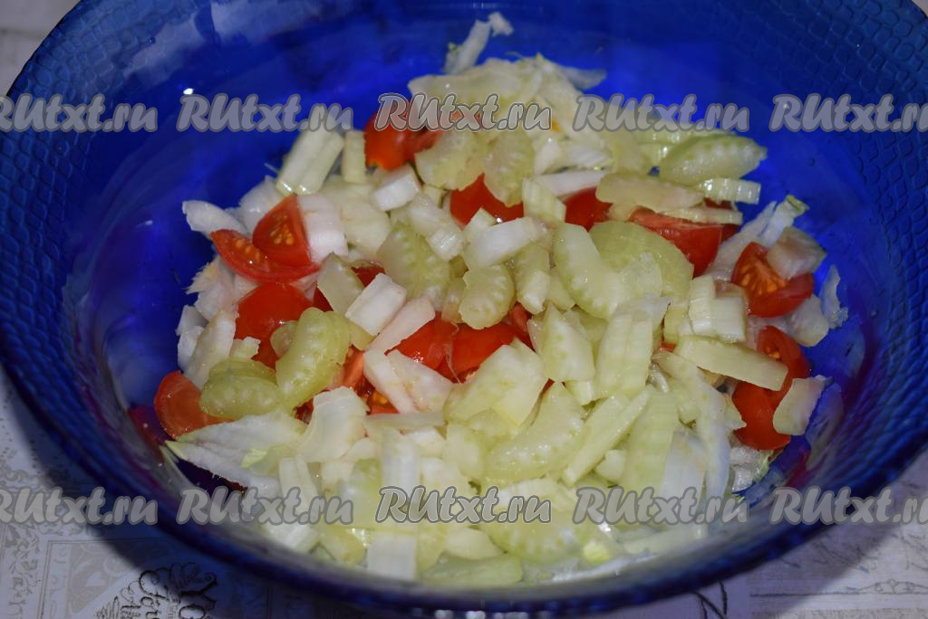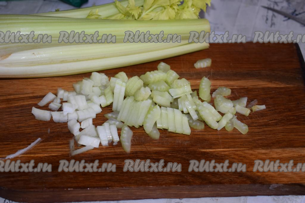 Стебли сельдерея нарежем на полоски.