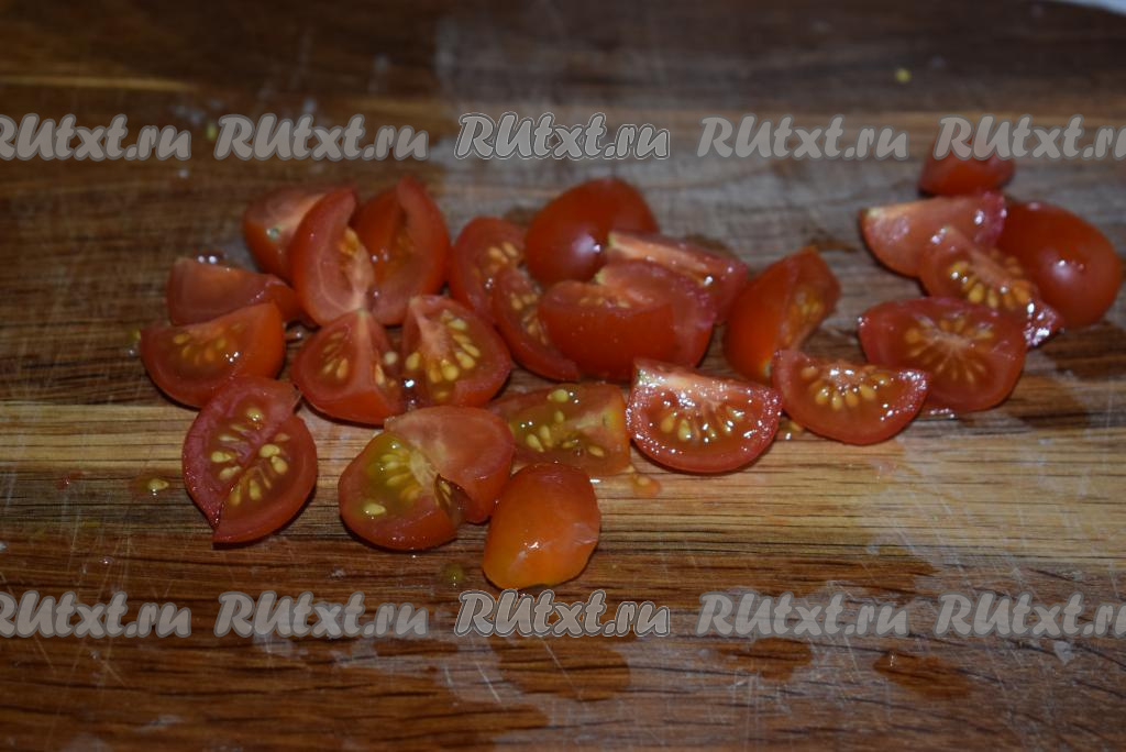 Нарежем помидоры черри на четвертинки.