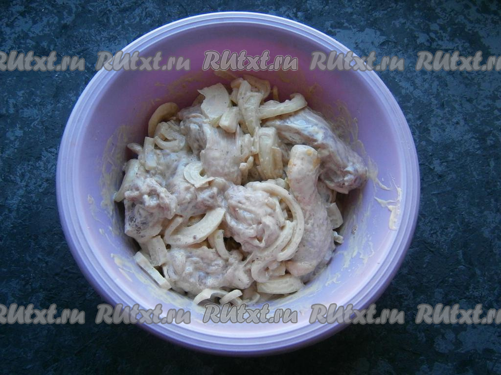 Смешать соус с курицей и луком, оставить на 30 минут.