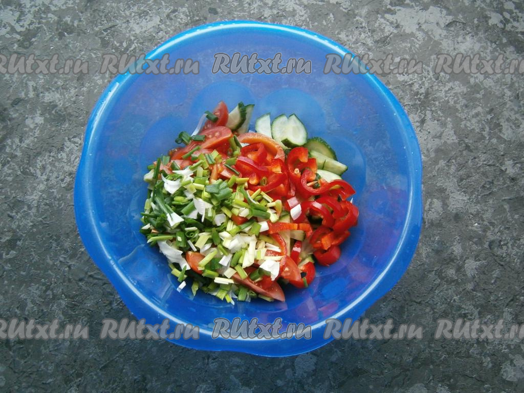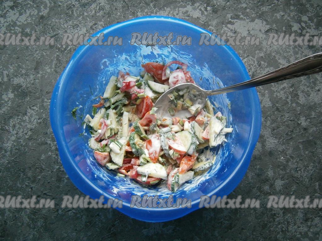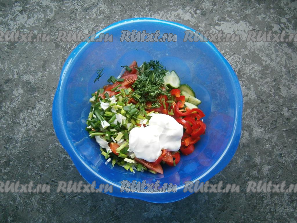 Для приготовления салата из помидоров и огурцов со сметаной вам потребуется:
