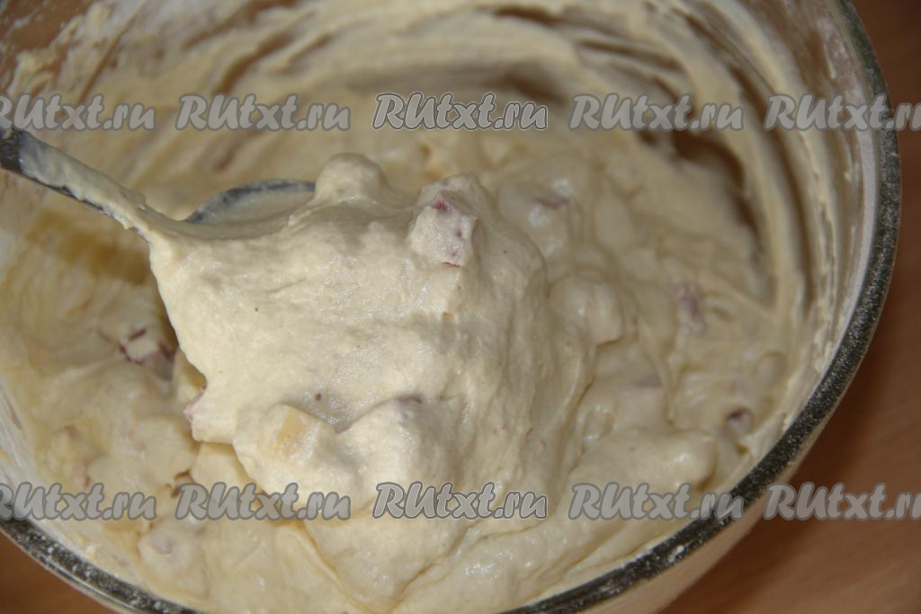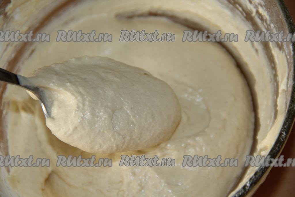 Далее добавить остатки муки и молока, ещё раз хорошо перемешать миксером на низких оборотах. Тесто получится очень воздушным и нежным.