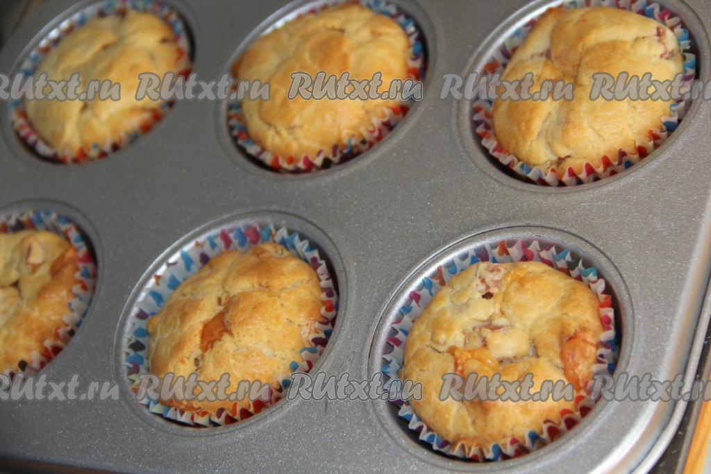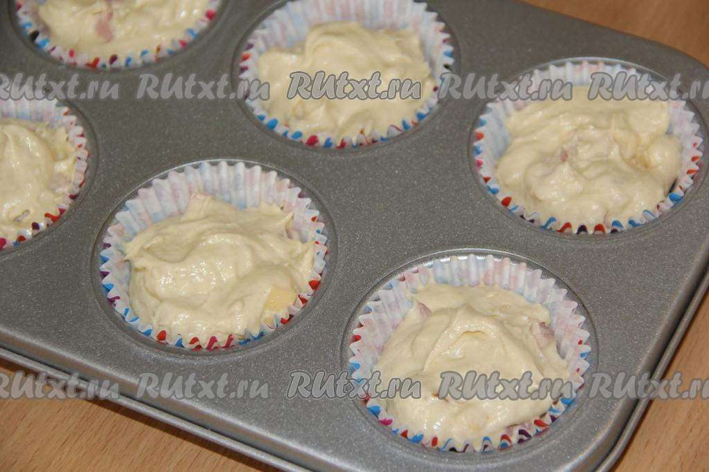 Тесто разложить по формочкам, заполняя формы на 2/3 их объёма. Я использовала бумажные вкладыши, поэтому формочки ничем не смазывала. Если вы планируете выпекать кексы с сыром и ветчиной в железных формочках, то перед выкладыванием теста смажьте их сливочным маслом. Из указанного количества ингредиентов, в зависимости от размера формочек, получится 9-12 закусочных кексов.