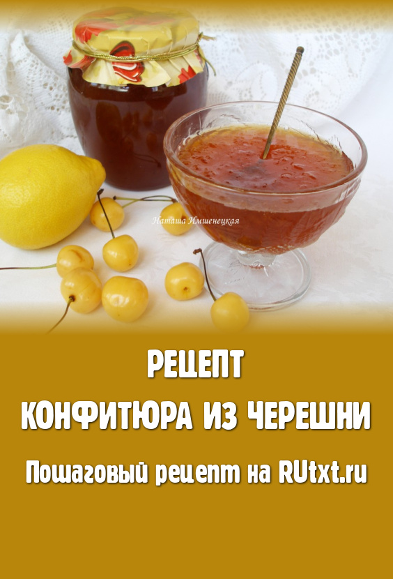 Черешня - очень вкусная летняя ягода. Предлагаю рецепт конфитюра из черешни. Конфитюр получается ароматным и очень приятным на вкус.
