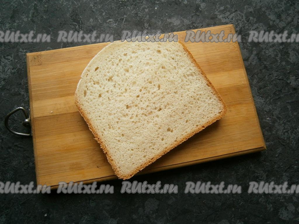 От буханки хлеба отрезать целый ломоть толщиной около 1-1,5 см.