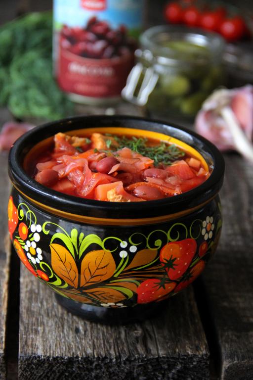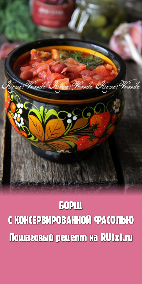 Существует великое множество рецептов борщей. Сегодня я вам предлагаю приготовить яркий, сытный, аппетитный борщ с консервированной фасолью. Блюдо получается насыщенным и очень вкусным. Консервированная фасоль подойдёт и красная, и белая. Борщ можно подать со сметаной, зеленью, салом и гренками. Отличное блюдо для всей семьи, попробуйте!