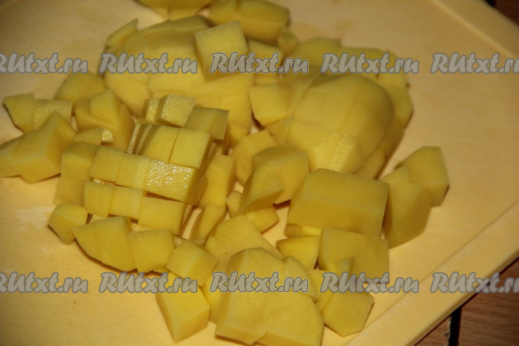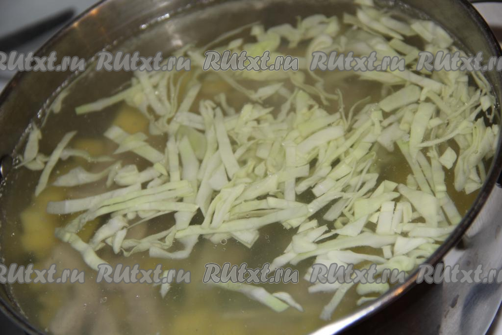 Когда мясо проварится минут 30, добавить в кастрюлю картофель и капусту, варить 15-20 минут.