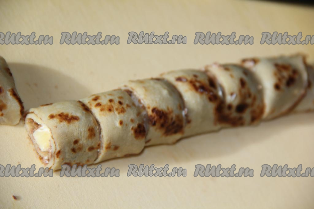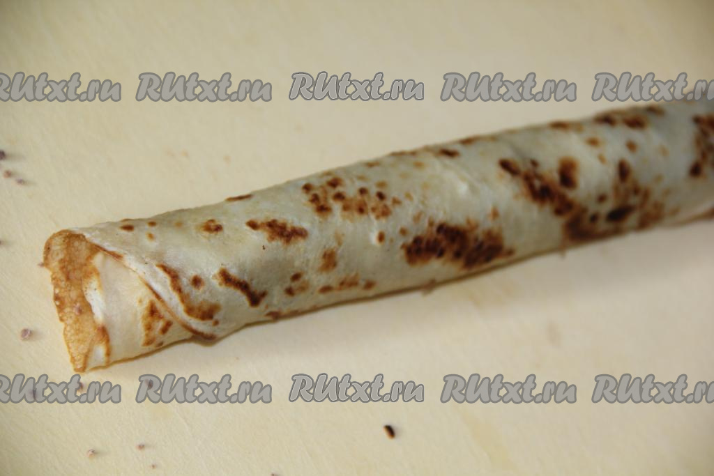 Завернуть блин с начинкой в плотный рулет.
