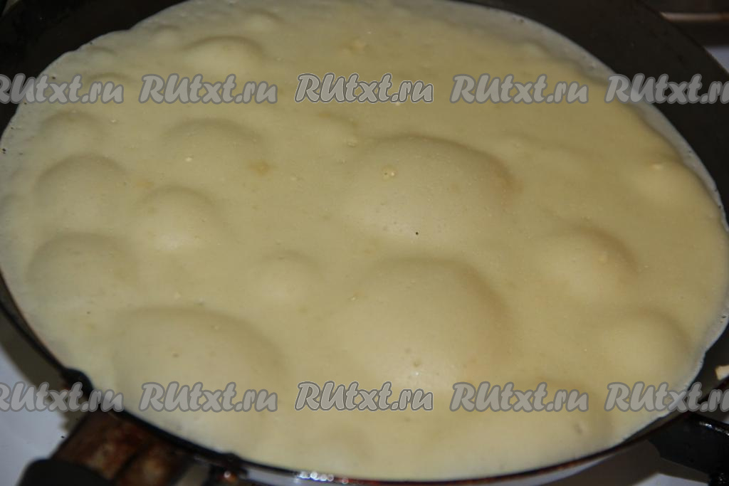 Выпекать блинчики на раскалённой сковороде на среднем огне с двух сторон до золотистого цвета. Сковороду я смазывала маслом только перед первым блином.