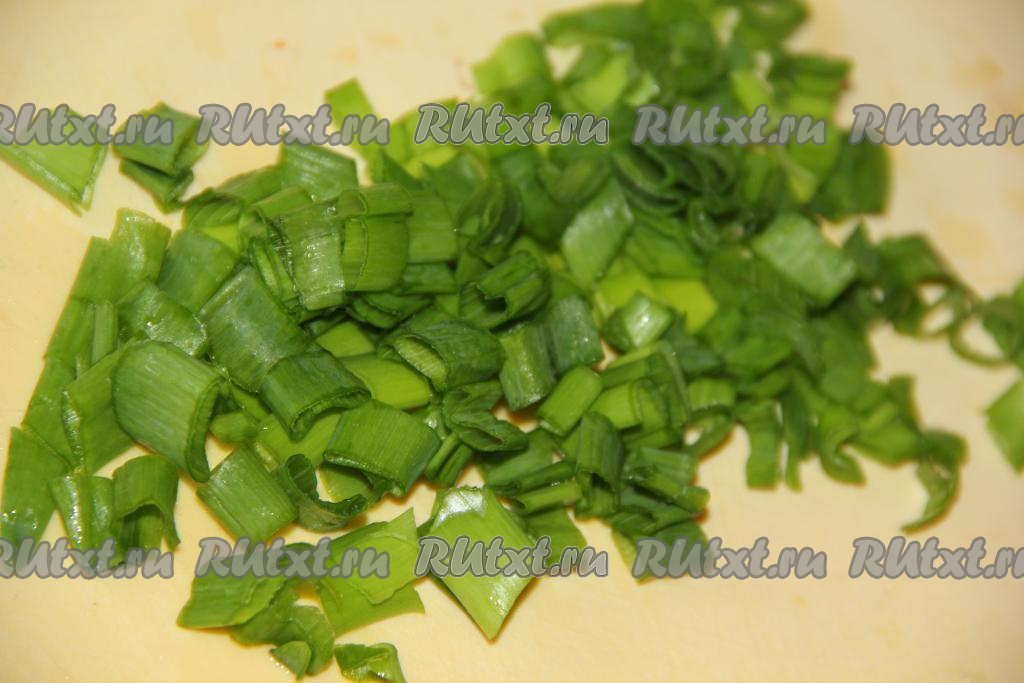 Зелёный лук вымыть, обсушить и мелко нарезать.