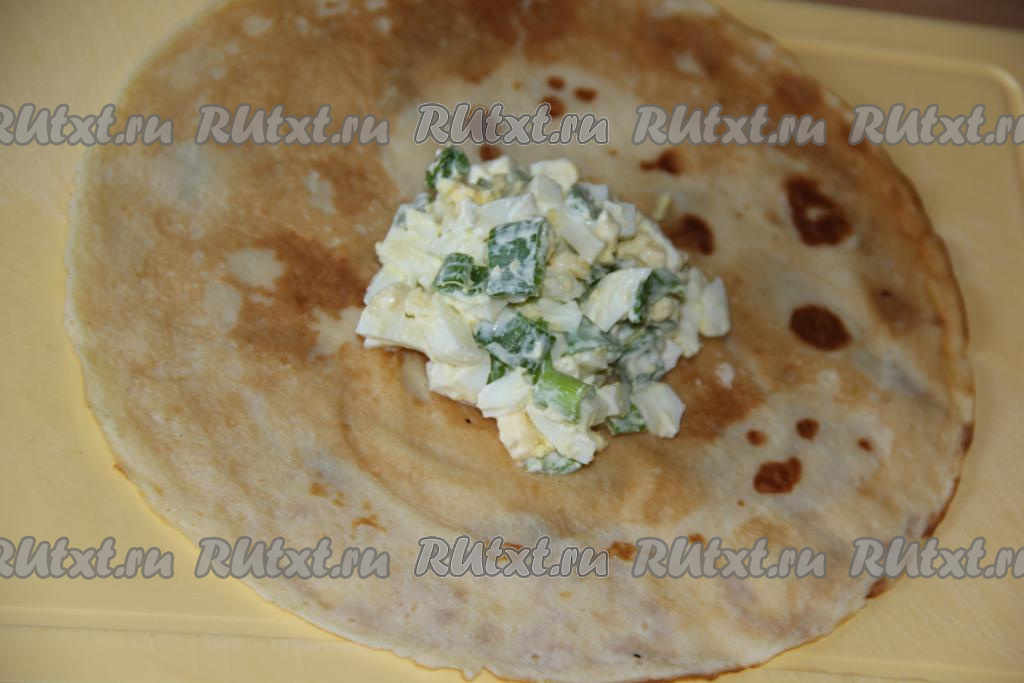 На блин выложить 1 столовую ложку начинки.