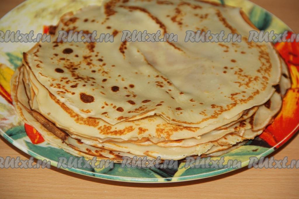Жарить блинчик с двух сторон до золотистого цвета. Приготовить таким образом все блины, они получатся аппетитными и достаточно тоненькими.