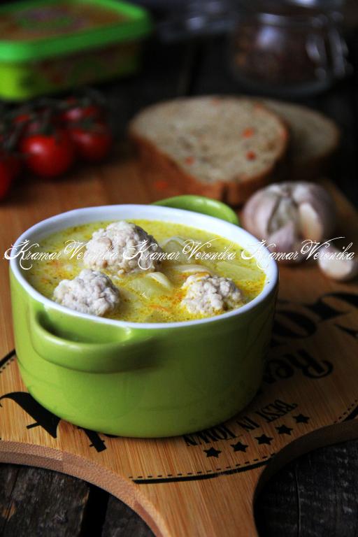 Вот такой аппетитный и очень вкусный сырный суп с фрикадельками и плавленным сыром получился.