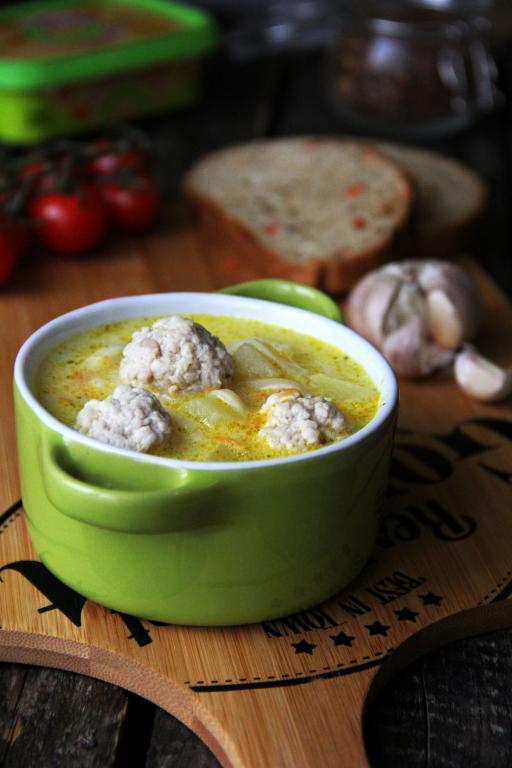 В моей семье самые любимые супчики - сырные. Для получения приятной консистенции и привлекательного вида такого супа я использую только мягкий плавленный сыр. Ни сырки "Дружба", ни "Хохланд" для приготовления сырного супа не подойдут, так как в процессе расплавления в бульоне они дают крупинки, а значит ухудшают вкус и внешний вид готового блюда. Предлагаю рецепт вкусного, ароматного и, конечно, сытного супа с фрикадельками и плавленным сыром. Этот сырный супчик готовится очень просто и достаточно быстро, ведь не надо длительно варить бульон. Отличный суп для всей семьи, попробуйте!