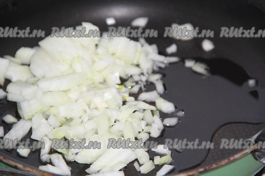 После закипания уменьшить огонь и варить суп до готовности картофеля (минут 15-20). В сковороду выложить мелко нарезанный лук, обжарить его с добавлением растительного масла в течение минут 5 на среднем огне, иногда помешивая.