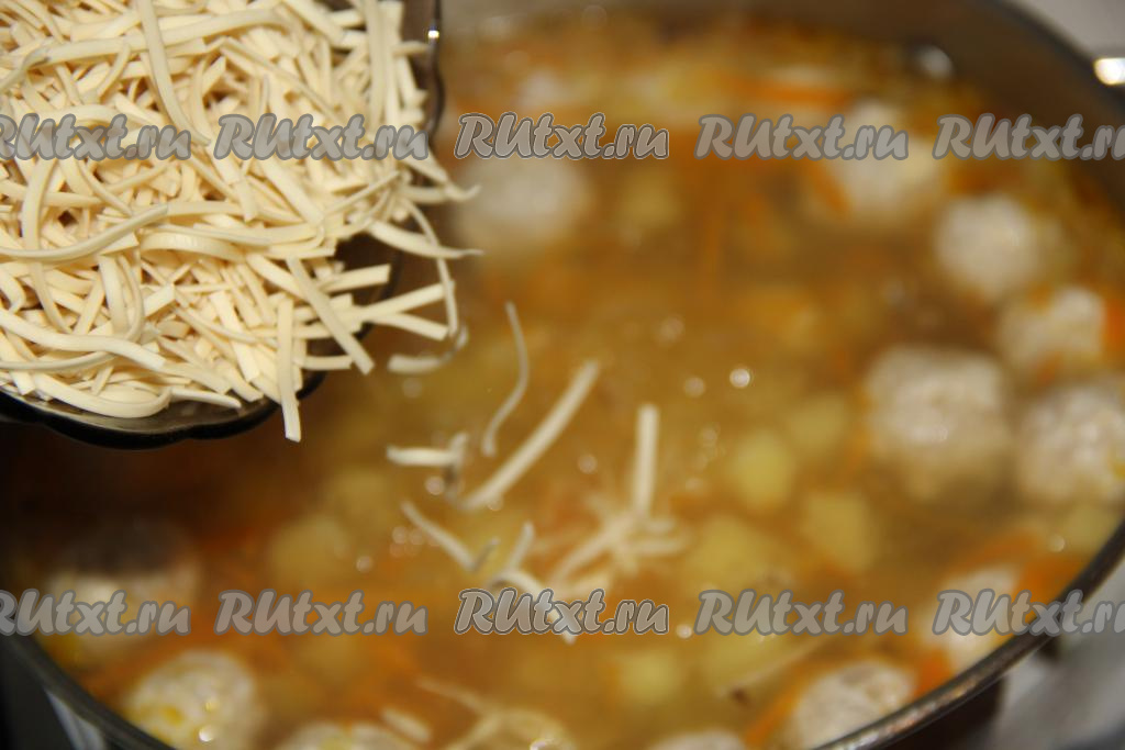 Сразу добавить плавленный сыр в суп с фрикадельками.