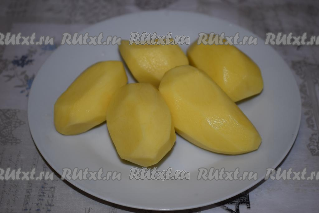 Картофель чистим и промываем под холодной водой. У меня картофель не крупный, поэтому я взяла 5 клубней, обычно на это количество воды беру 3 крупных картофелины.