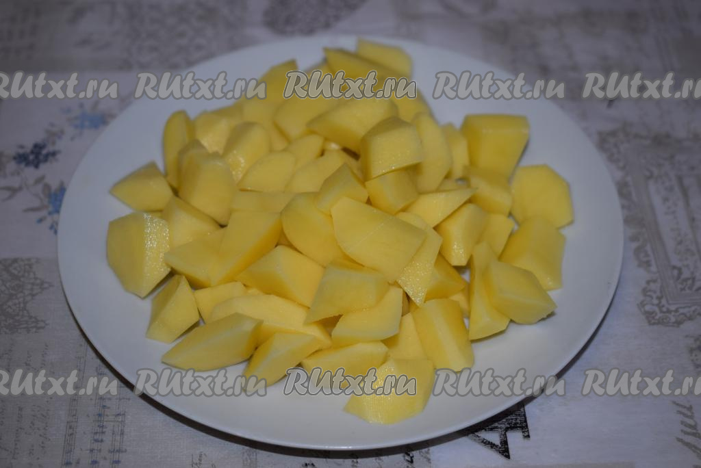 Режем картофель на дольки, примерно, одинакового размера.