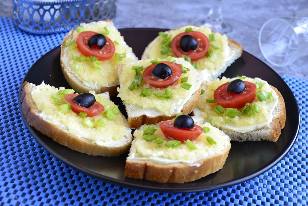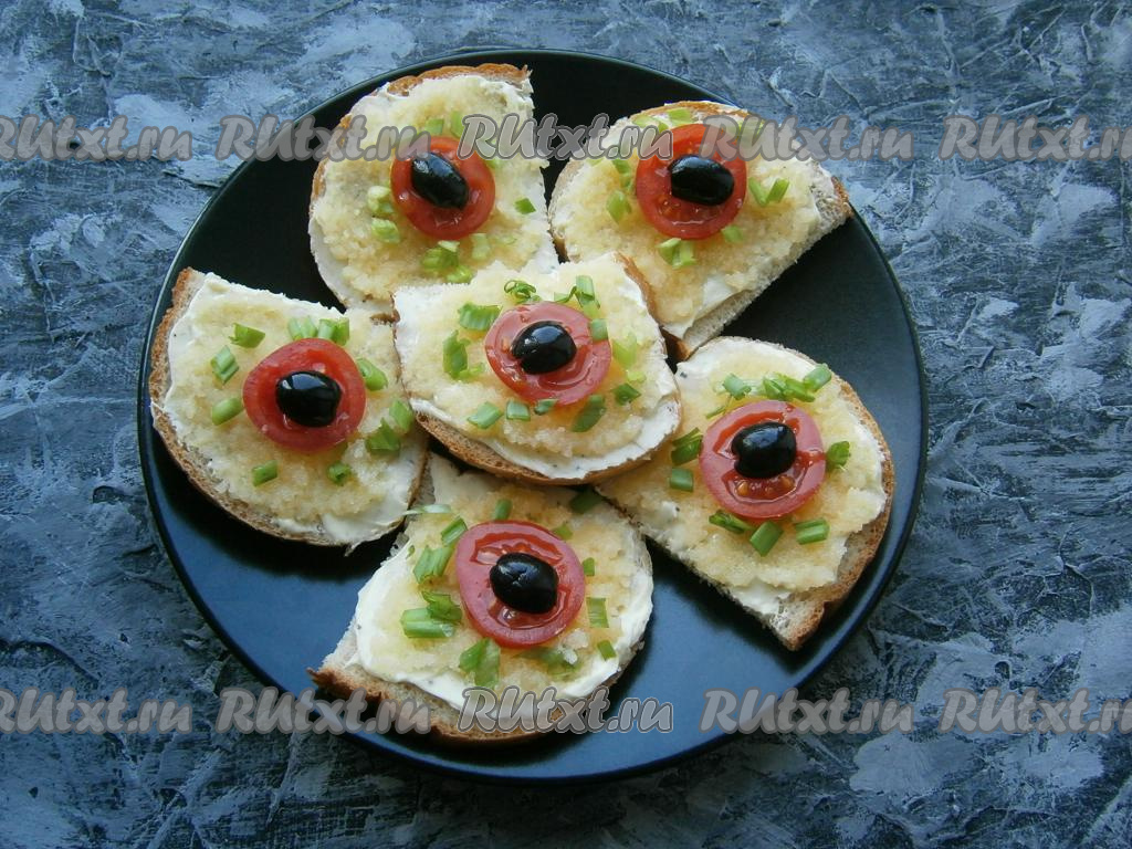 Бутерброды с икрой мойвы украсить колечками помидоров и половинками оливок, посыпать измельченным зеленым луком (как на фото).