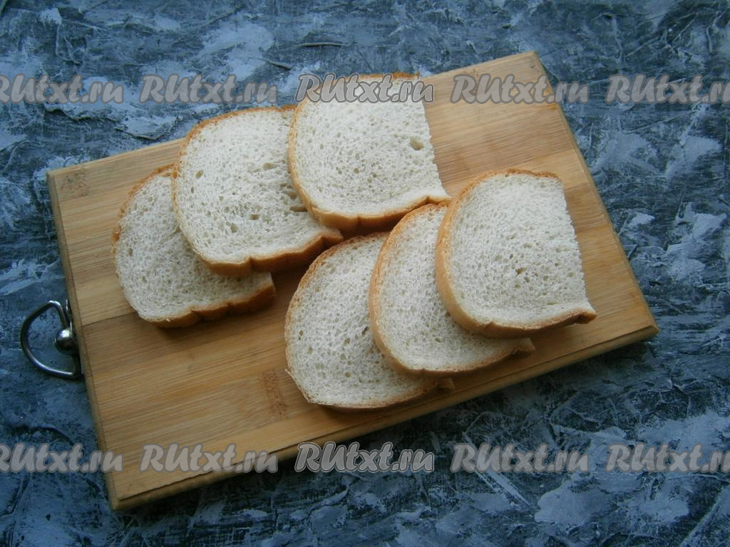 Ломти хлеба (или батона) разрезать пополам.
