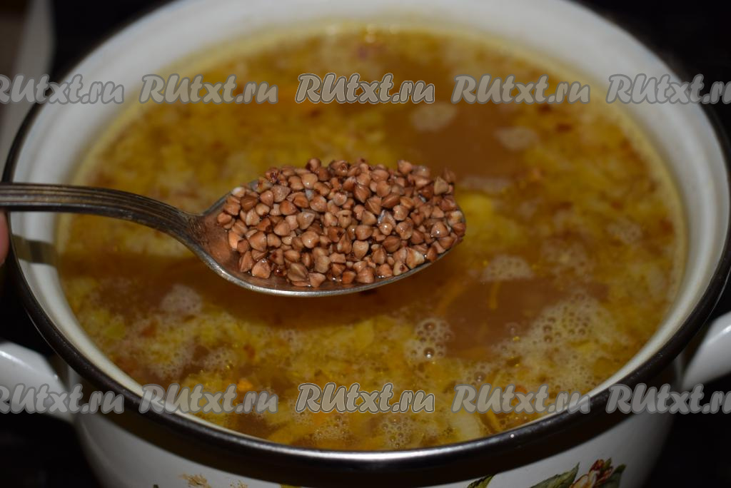 В кипящий постный суп выкладываем гречку и варим до полной готовности крупы (примерно, 12-14 минут). За это время картофель разварится и станет очень мягким и вкусным.