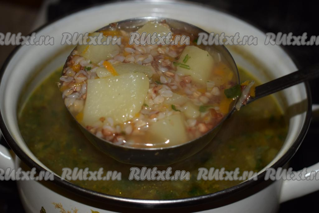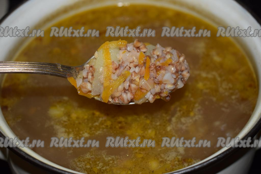 Наш постный гречневый суп готов. Несмотря на простые ингредиенты, супчик получается очень насыщенным, вкусным и наваристым. Он прекрасно утоляет голод и станет прекрасным обедом для всей семьи!