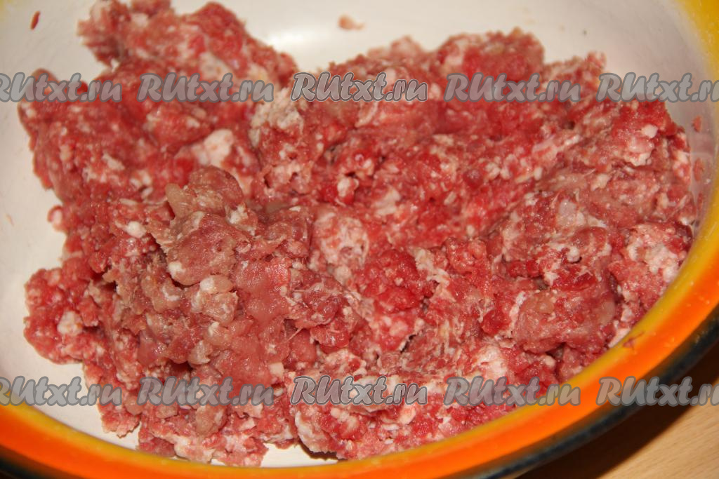 Лук очистить, пропустить через мясорубку (или мелко нарезать), добавить в фарш, посолить, поперчить и хорошо вымесить.