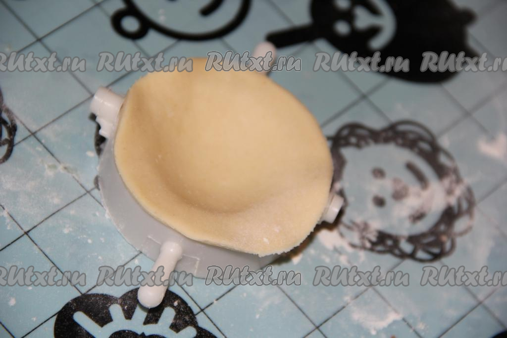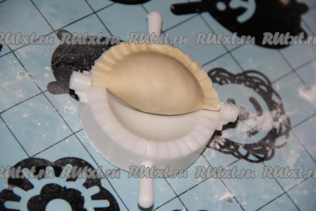 Закрыть створки формочки и хорошо прижать, формируя пельмешек. Сформировать все пельмени.