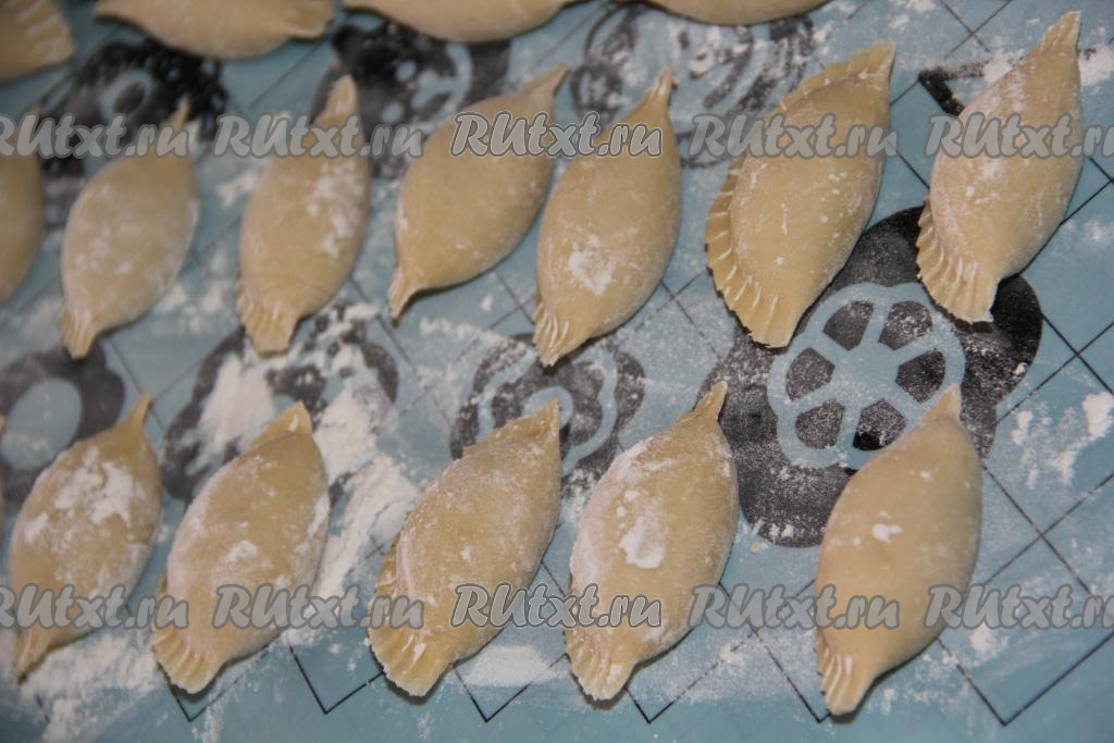 Сформированные пельмени выложить на припорошенную мукой поверхность. Можно выложить пельмешки в один слой на доску и заморозить их в морозилке впрок, а можно сразу отварить их и подать к столу.