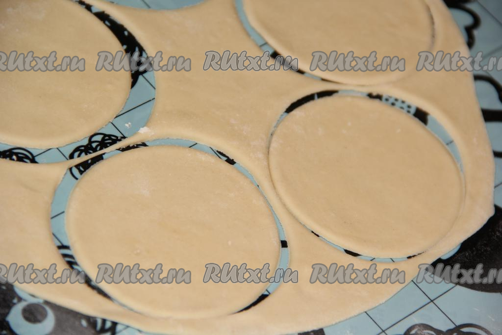 На столе, припыленном мукой, готовое тесто раскатать скалкой в пласт.
