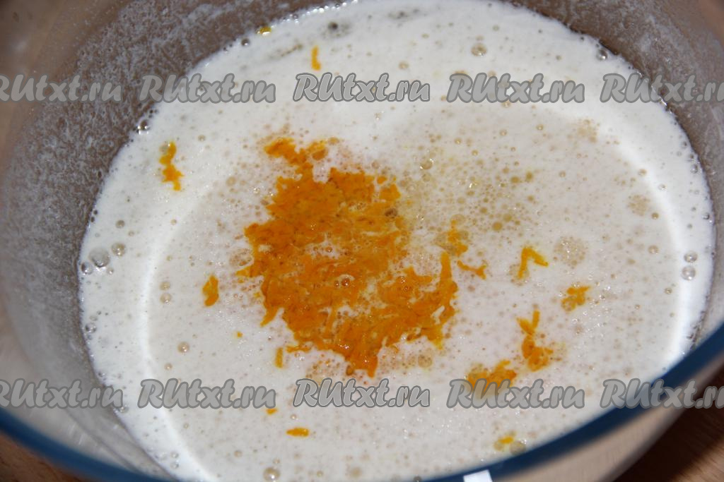 Лимон тщательно вымыть, снять с него цедру, добавить в дрожжевую массу и перемешать.