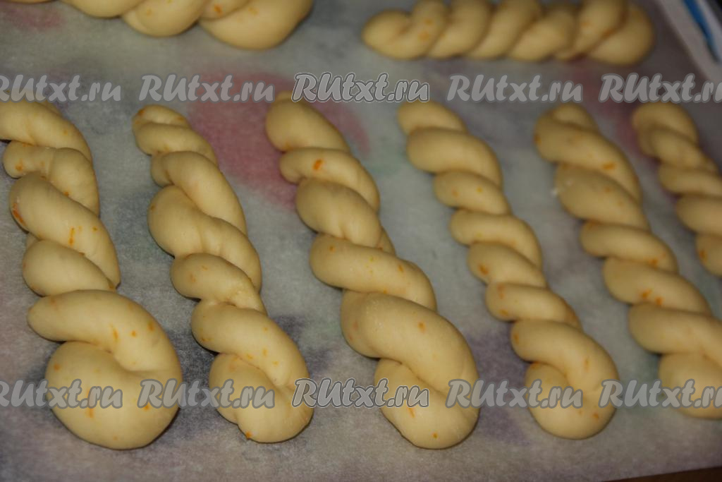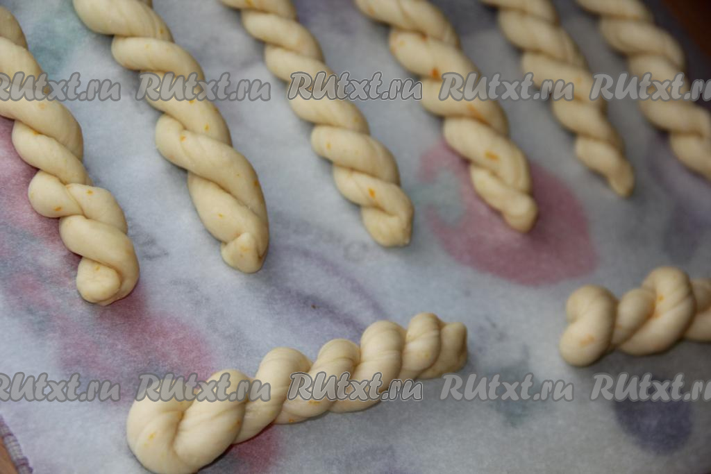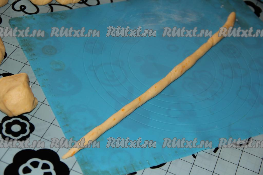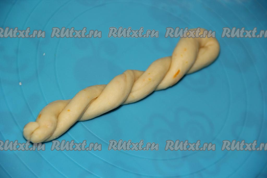 Каждую часть теста скрутить в длинный жгутик (получится 16 жгутиков).