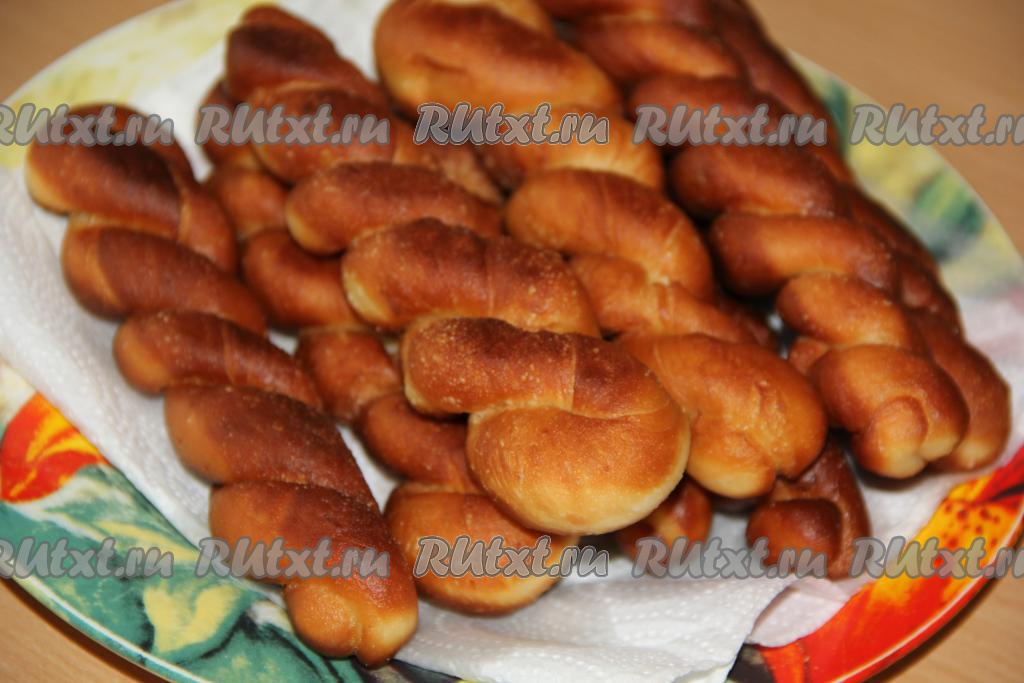 Готовые дрожжевые пончики выкладывать на бумажное полотенце. По форме приготовленные пончики напоминают спирали. Такая необычная форма несомненно понравится многим. Конечно, из теста, замешанного по этому рецепту, можно сделать пончики любой формы. Вне зависимости от формы, пончики получаются нежными, воздушными и необычайно вкусными.