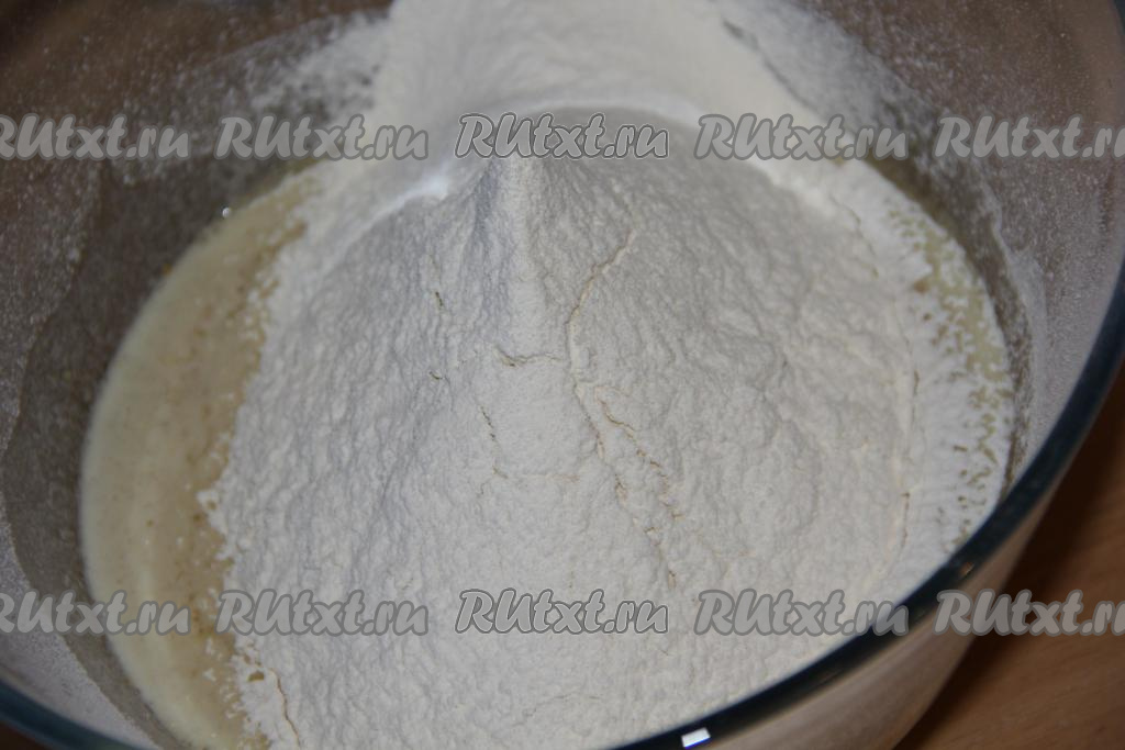 Всыпать просеянную муку.