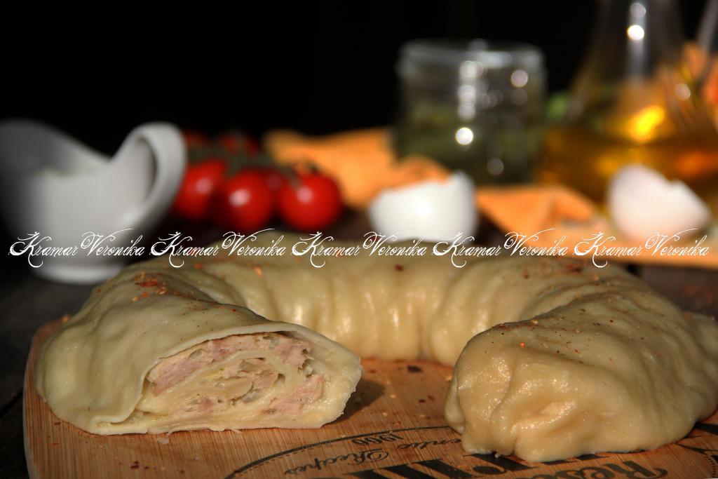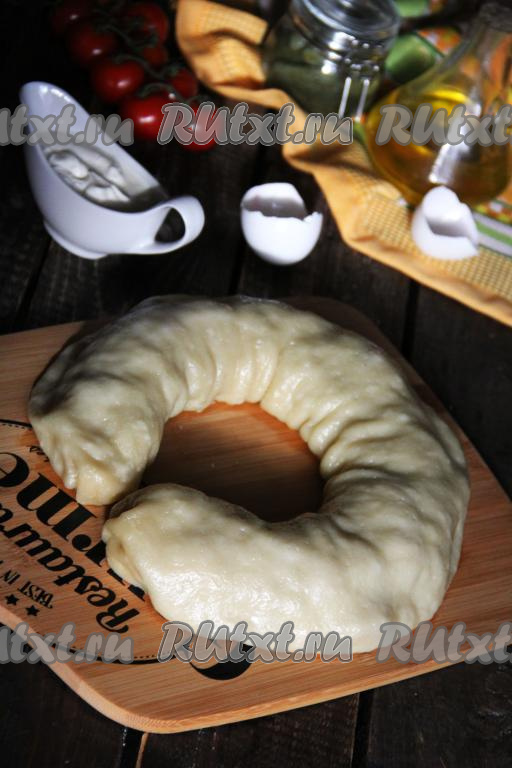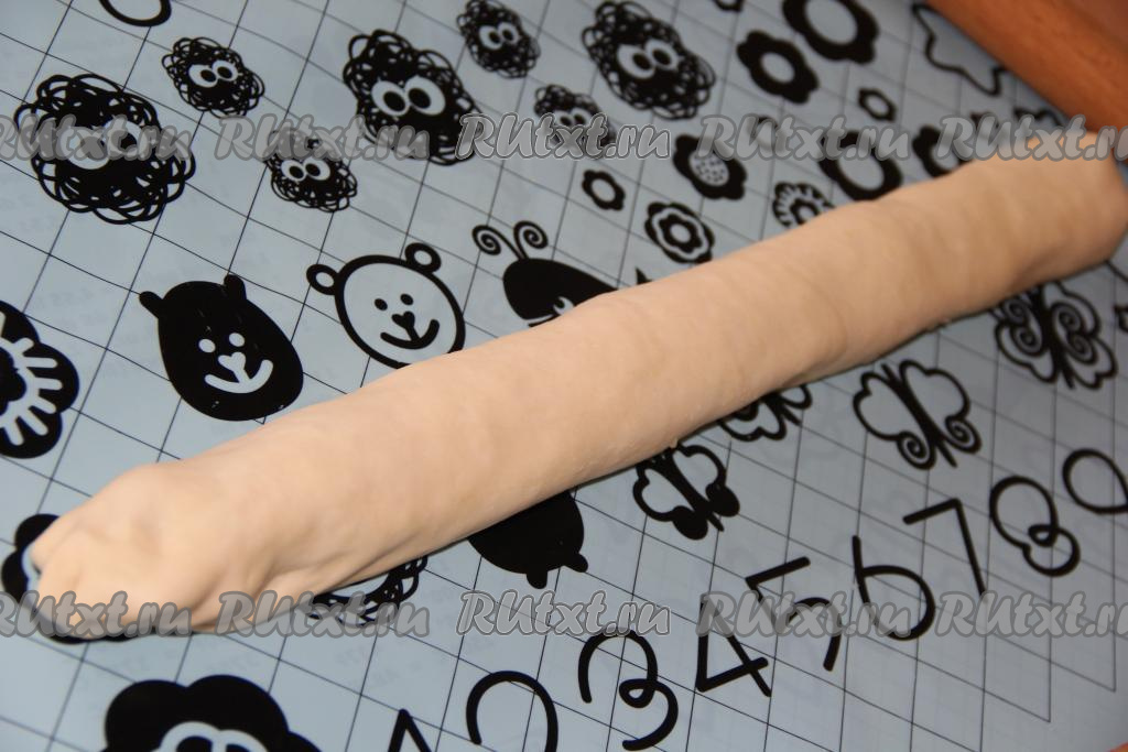 Свернуть тесто с начинкой в тугой рулет, хорошо скрепить края.