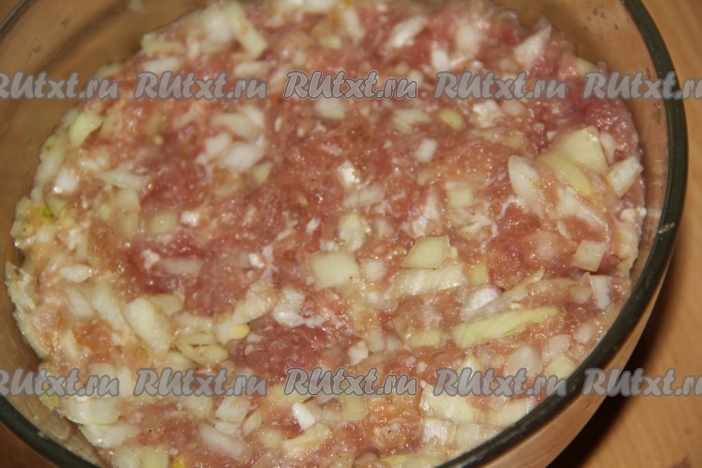 Пока тесто отдыхает, нужно свинину пропустить через мясорубку.