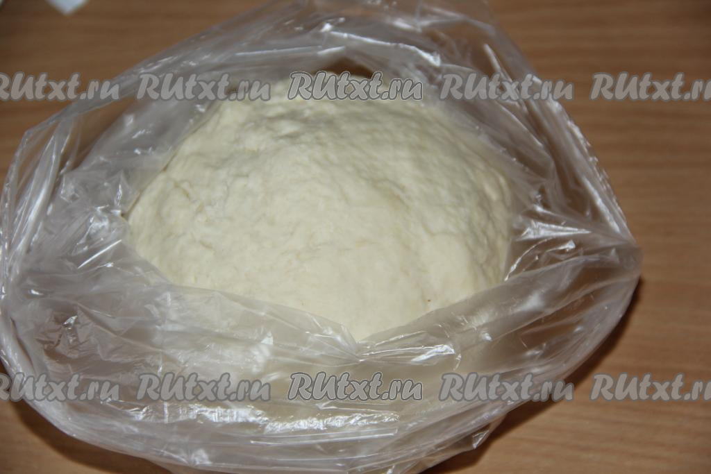 Непрерывно перемешивая, влить небольшими порциями холодную воду и растительное масло. Замесить эластичное тесто, не липнущее к рукам. Поместить тесто в полиэтиленовый пищевой пакет и оставить при комнатной температуре на 1 час.