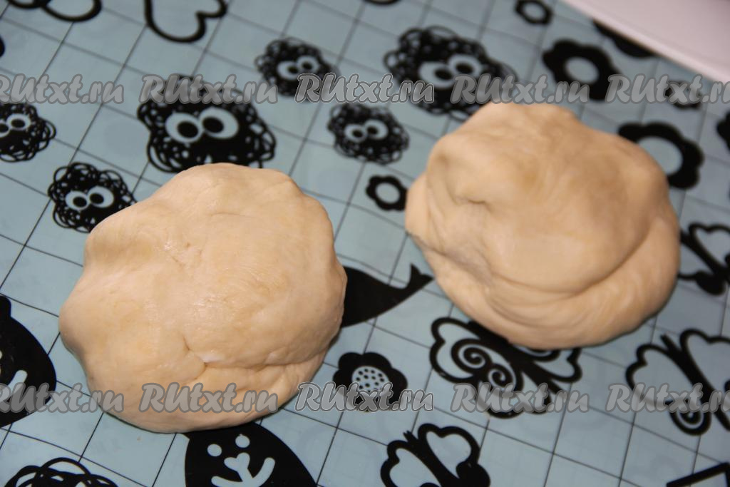Готовое тесто разделить на две части. Мы будем готовить два ханума.