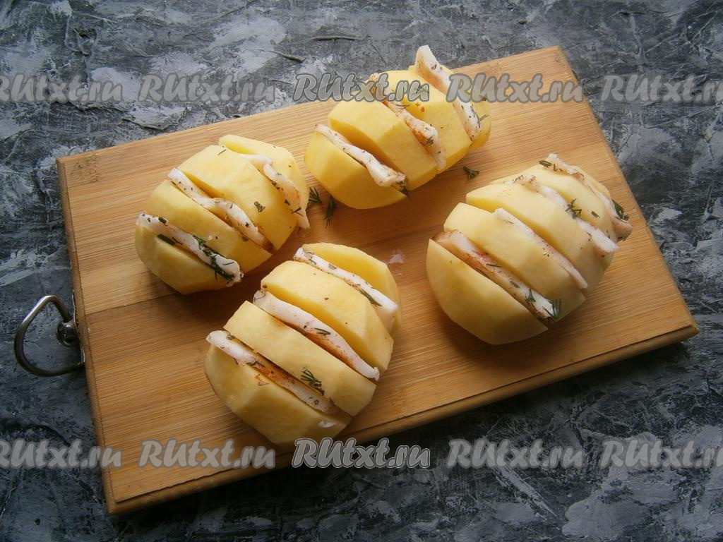 На каждой картофелине сделать по 3-4 глубоких надреза, но не дорезая до конца.