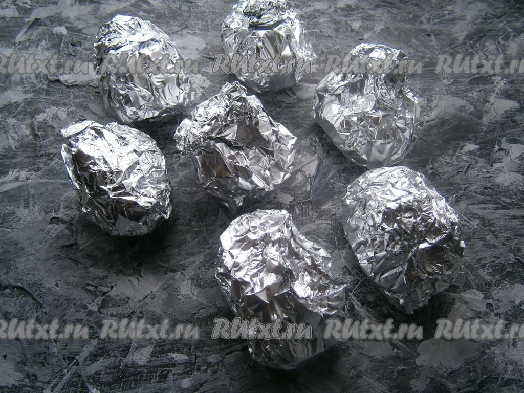 Каждую картофелину выложить на лист фольги. Посолить картошку сверху и поперчить.