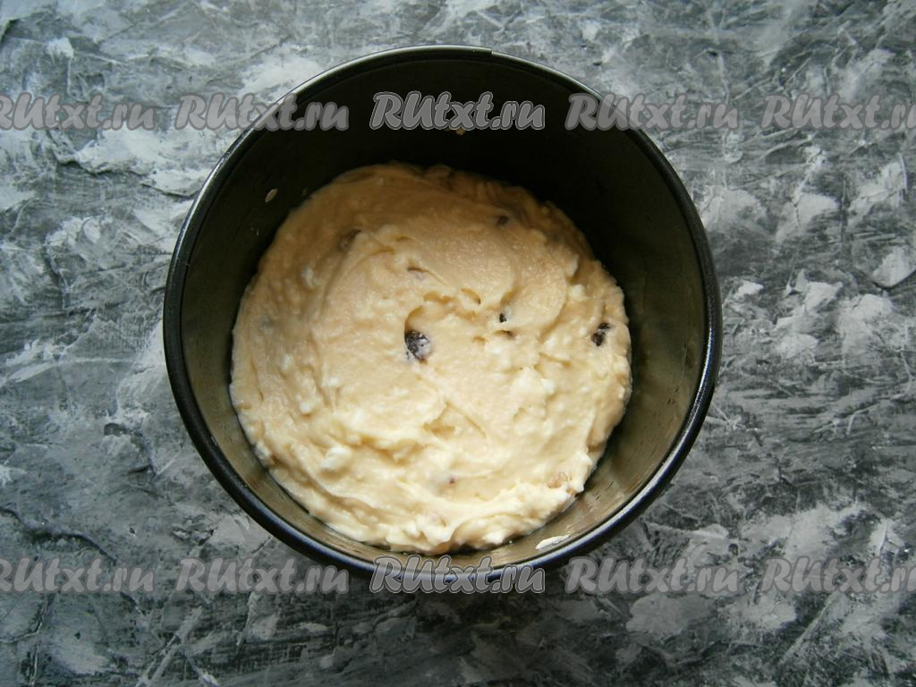 Творожное тесто для кулича ещё раз перемешать ложкой, оно получится густым и плотным.