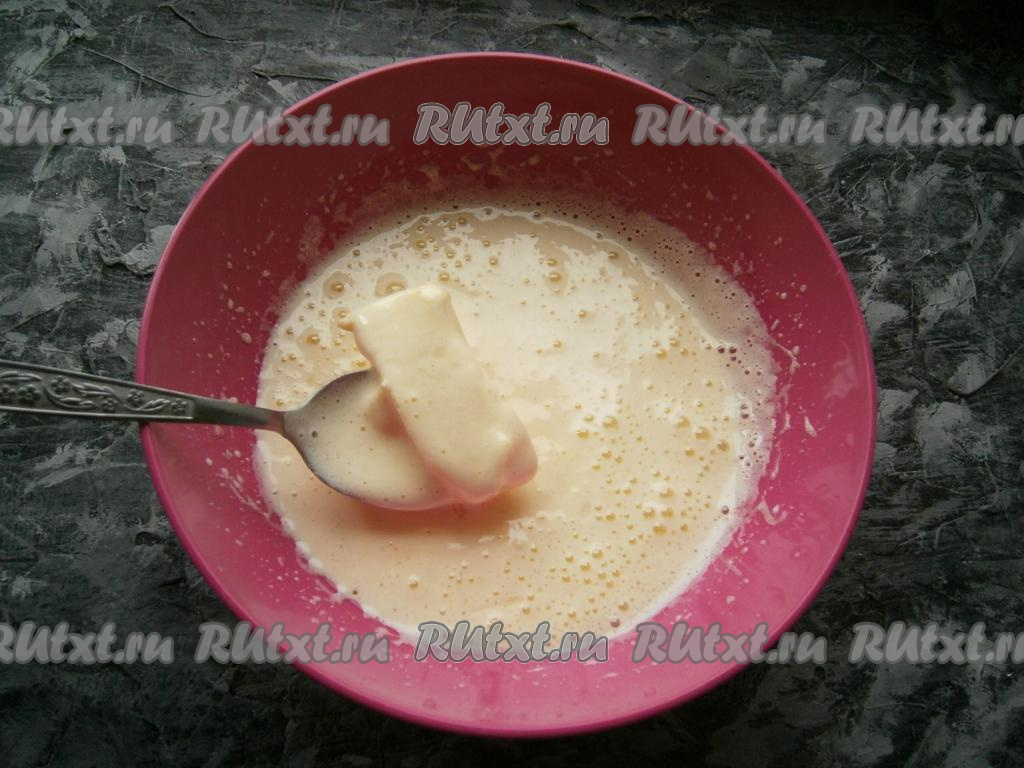 Снова взбить миксером до однородности, затем добавить жирный мягкий творог.